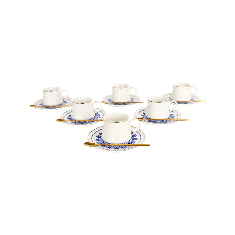 Das Mavi Espresso- und Teegläser-Set von Shine Home bringt mit seiner eleganten Kombination aus Weiß, Gold, Blau und transparentem Glas luxuriösen Charme in deine Kaffeepause. Die Mischung aus hochwertiger Keramik und edlem Glas macht dieses Set zu einem stilvollen Highlight auf jedem Tisch. Mit 24 perfekt abgestimmten Teilen bietet es alles, was du für genussvolle Espresso-Momente brauchst – ob für den Alltag oder besondere Anlässe.